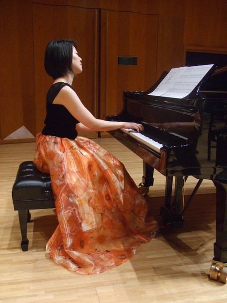 音楽学院を経営し 多くの生徒さんをご指導されている先生からのご依頼で着物から演奏用ドレスにリメイクしました。