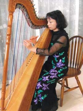 ハープ演奏は足元のペタルを踏んで演奏する為 足さばき(裾広がり)が必要になります。